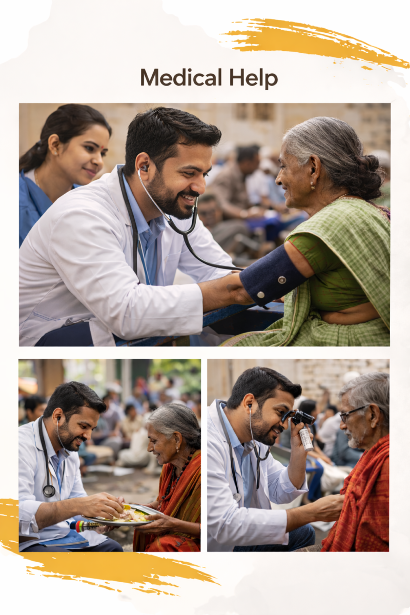 We provide medical assistance to those who lack access to proper healthcare facilities. The foundation supports health camps, medical checkups, and treatment aid for needy individuals. Health is essential for personal and social well-being. Our medical initiatives focus on timely support, awareness, and preventive care. We aim to reduce suffering while upholding compassion and dignity.